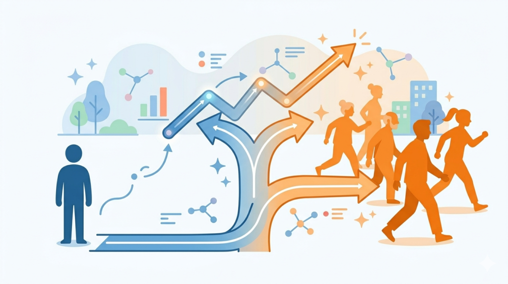 仕事・収入・時間——AIを使う人と使わない人の差は、5年後に取り返しがつかなくなる。「まだいい」と思っているうちに周りは変わっています。今すぐ動くべき理由をデータとともに解説します。 -