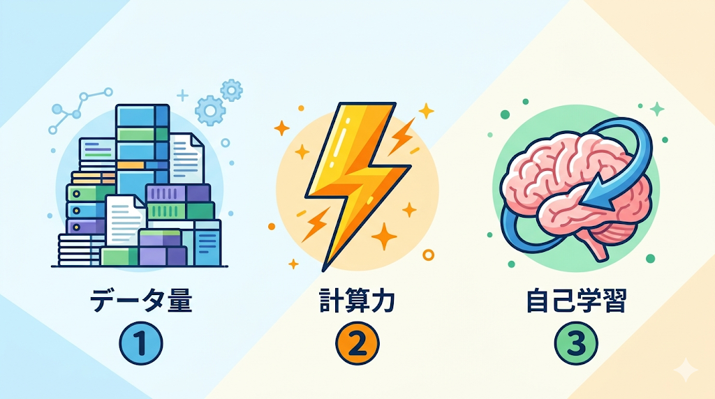 AIが急に賢くなった理由は、大きく3つあります。